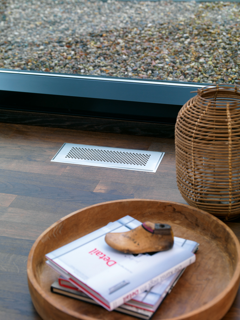 Zehnder Comfosystems passt zu jedem Einrichtungsstil. Einzig sichtbar sind die Auslässe für Zu- und Abluft und diese werden diskret durch Design-Abdeckgitter verborgen.